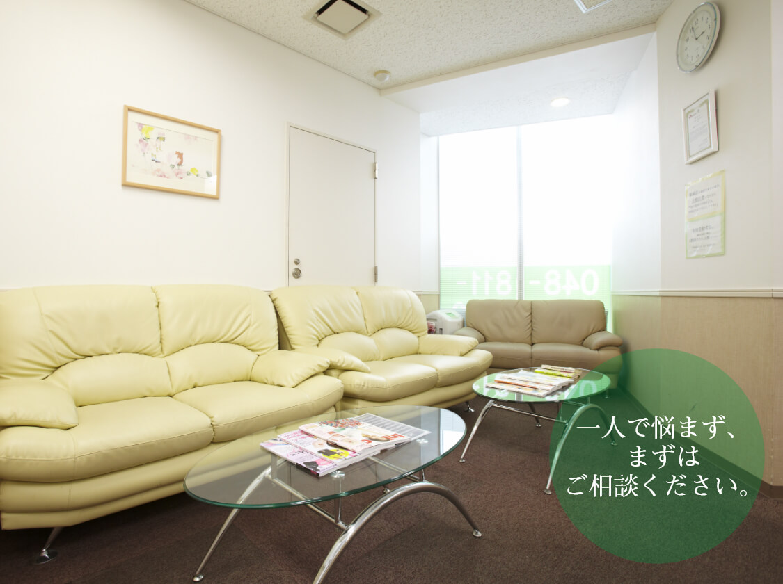 待合室 : ゆったりとしたソファーがある待合室でお待ちいただけます